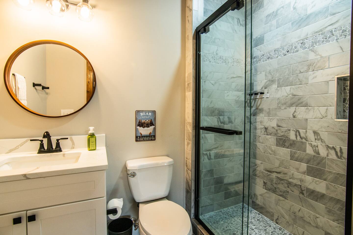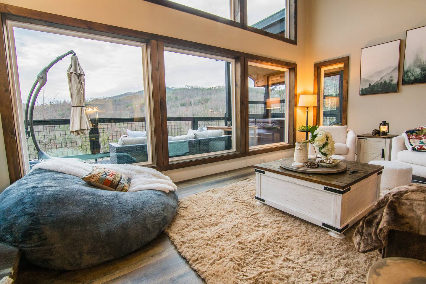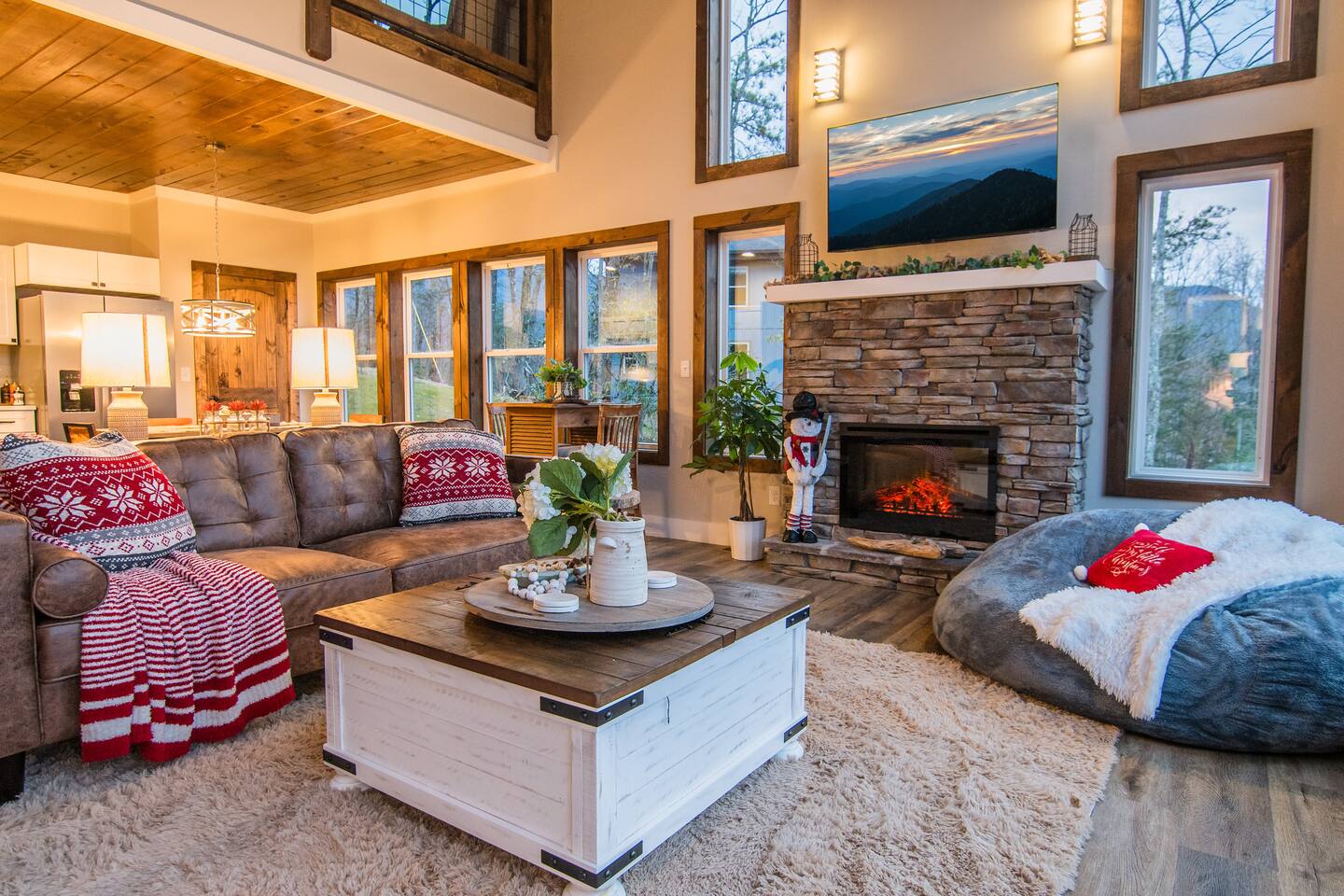 Experience the perfect blend of comfort and nature's beauty at our mountain retreat. We're beyond excited to share this amazing cabin with you! You will be provided an initial set of starter packs, including toilet paper, paper towels, dish and laundry detergent, coffee k-cups, sugar, creamer, and limited syrups to help get you started. While this is only a starter pack, if you find yourself needing additional items, local convenience and grocery stores are in the area. TV's - All rooms are equipped with Smart Roku TV's that are pre-programmed into guest mode. When you first turn on the television, you will be prompted to enter your check-out date. You may log into all of your preferred streaming accounts and leave the property with an ease of mind, knowing that all of your streaming accounts will be automatically logged off on the day of your departure. We do not provide cable, however the Smart TV's provide ample amount of free streaming content if desired. We just ask to not abuse the internet and TV services by downloading/streaming illegal content. Accessibility - This property is not ADA compliant, however only one step is required to enter the first floor of the cabin at the main entrance.