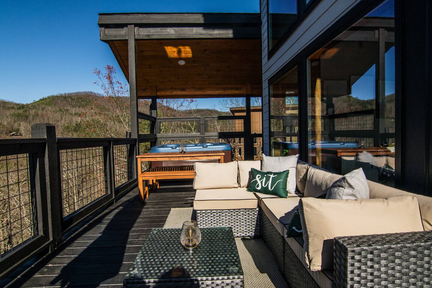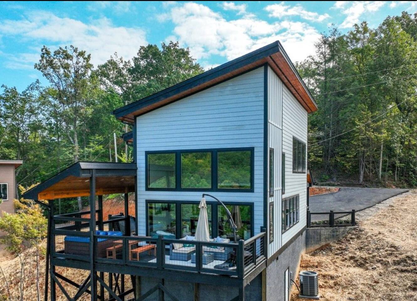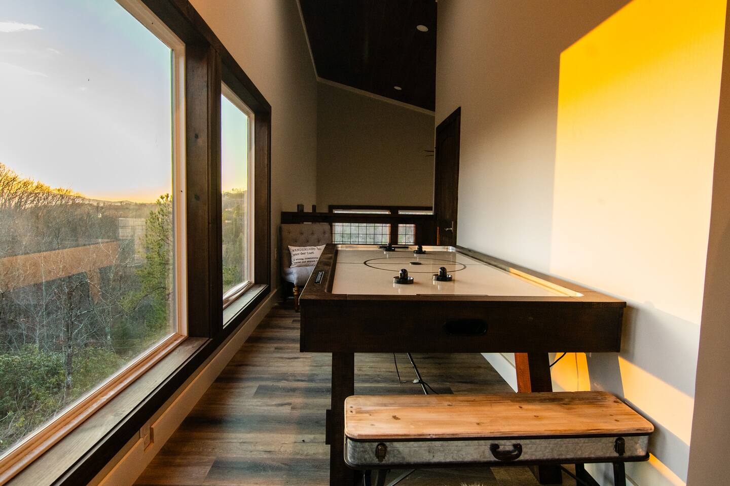- New build completed 2023 - Modern cabin with tasteful decorations - Patio Furniture with covered hot tub - Access to Cobbly Nob Resort Amenities: tennis courts, 3 outdoor pools, fully paved and maintained roads, 24/7 security - Access to Bent Creek Gold Course (18 holes, pay to play) THE CABIN - Main Floor consists of a large open space with high ceilings, fully stocked kitchen with pantry, dining table, living room with large 65" smart ROKU TV mounted above the fireplace. One Queen bedroom and bathroom. Also laundry room with ironing board and iron. - Upstairs As you walk up the stairs you will have windows that look out to the stunning mountains. A air hockey table and a King bedroom and bathroom combo to complete the upstairs.