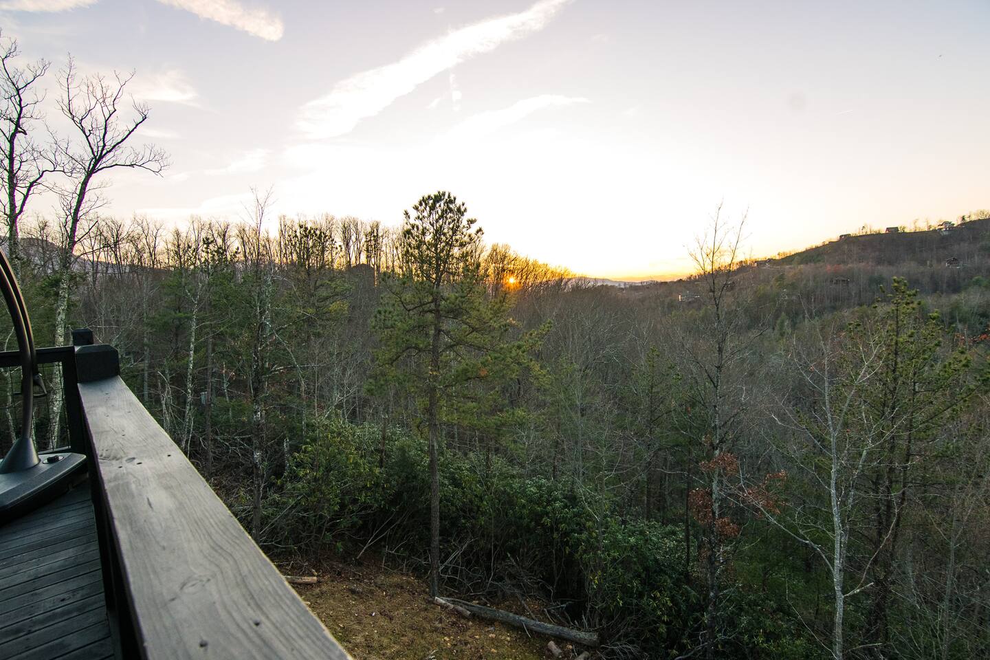 Welcome to the Sweet Hollow Mountain Lodge! Our 2-bedroom, 2-bathroom mountain lodge that comfortably sleeps 4 + 2 with the use of the king sized air mattress. Immerse yourself in the beauty of scenic mountain views from our spacious deck, perfect for unwinding or entertaining. The sunset view at night is sure to end your day perfectly! Located just 13 miles from the heart of Gatlinburg and 20 miles from Pigeon Forge.